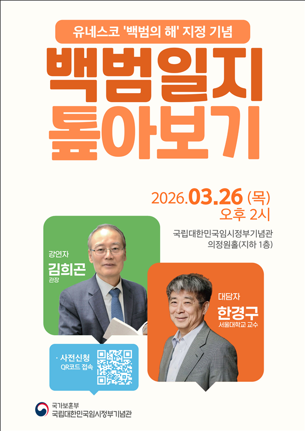 김 관장은 "유네스코가 백범 김구 선생을 세계기념인물로 지정한 뜻깊은 해를 맞아 진행하는 이번 특별강연이 일반 시민들도 '백범일지'를 쉽게 이해하는 것은 물론, 조국 독립운동의 역사와 대한민국 임시정부의 정신을 되새기는 의미있는 계기가 되길 바란다"고 밝혔다.