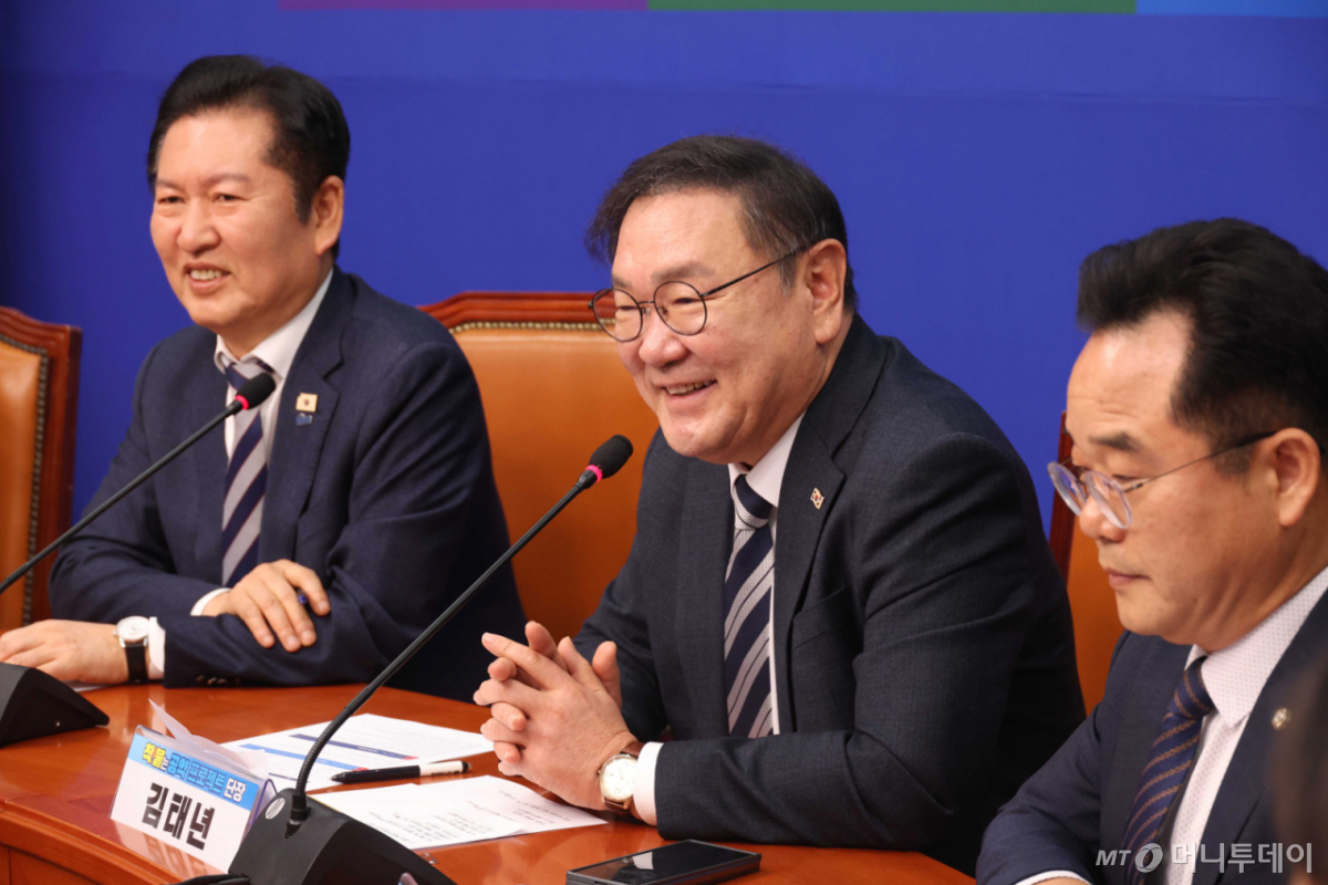 ![[서울=뉴시스] 조성봉 기자 = ‘착!붙 공약 프로젝트' 단장을 맡고 있는 김태년 더불어민주당 의원이 24일 오전 서울 여의도 국회에서 열린 ‘착!붙 공약 프로젝트 런칭 행사‘에서 발언을 하고 있다.2026.03.24. suncho21@newsis.com /사진=조성봉](https://thumb.mt.co.kr/cdn-cgi/image/f=avif/21/2026/03/2026032613360664348_1.jpg)