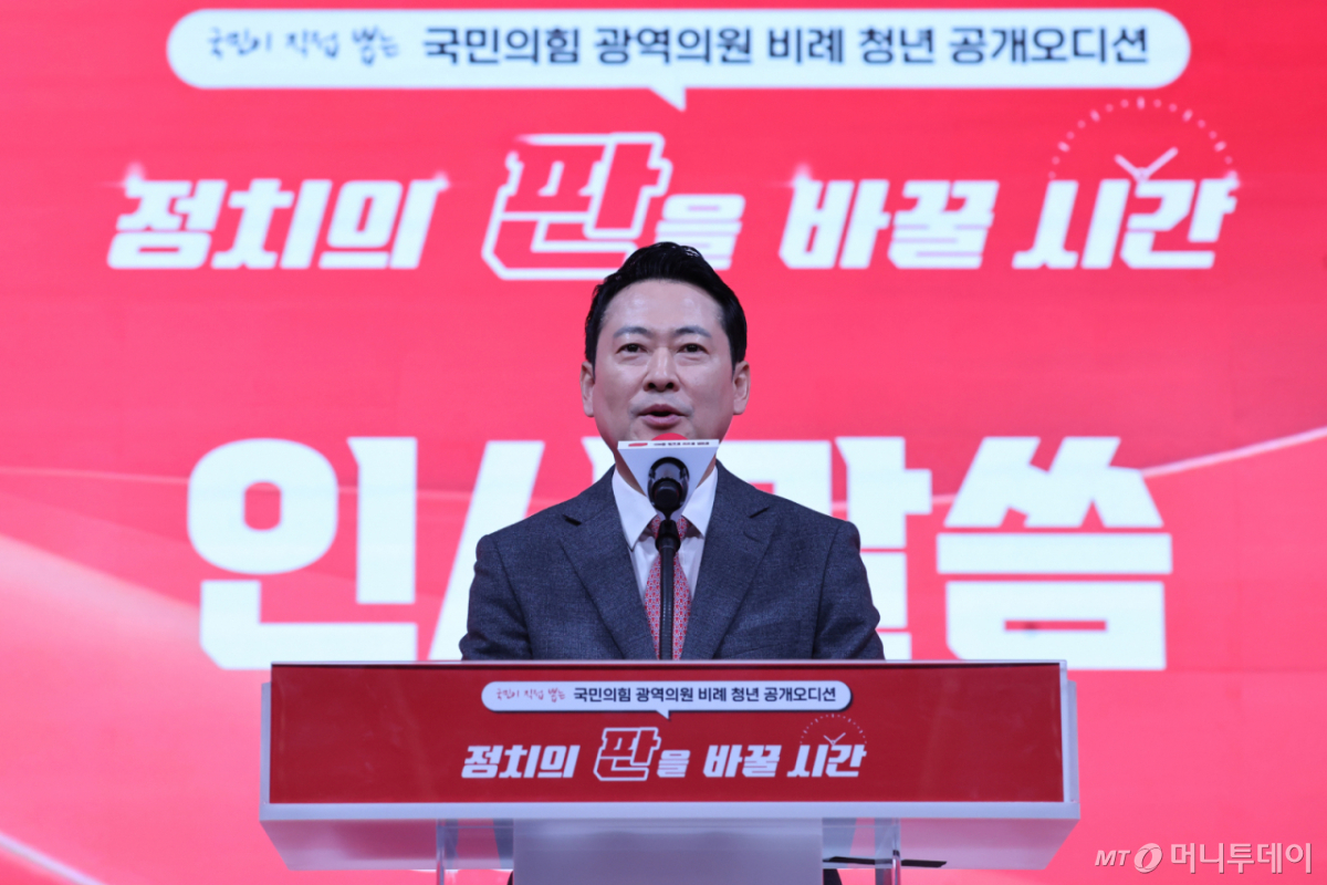 ![[서울=뉴시스] 김금보 기자 = 장동혁 국민의힘 대표가 28일 서울 강서구 아싸아트홀에서 열린 '국민의힘 광역의원 비례 청년 공개 오디션'에서 인사말을 하고 있다. (사진=국민의힘 제공) 2026.03.28. photo@newsis.com *재판매 및 DB 금지 /사진=](https://thumb.mt.co.kr/cdn-cgi/image/f=avif/21/2026/03/2026033009162925460_1.jpg)