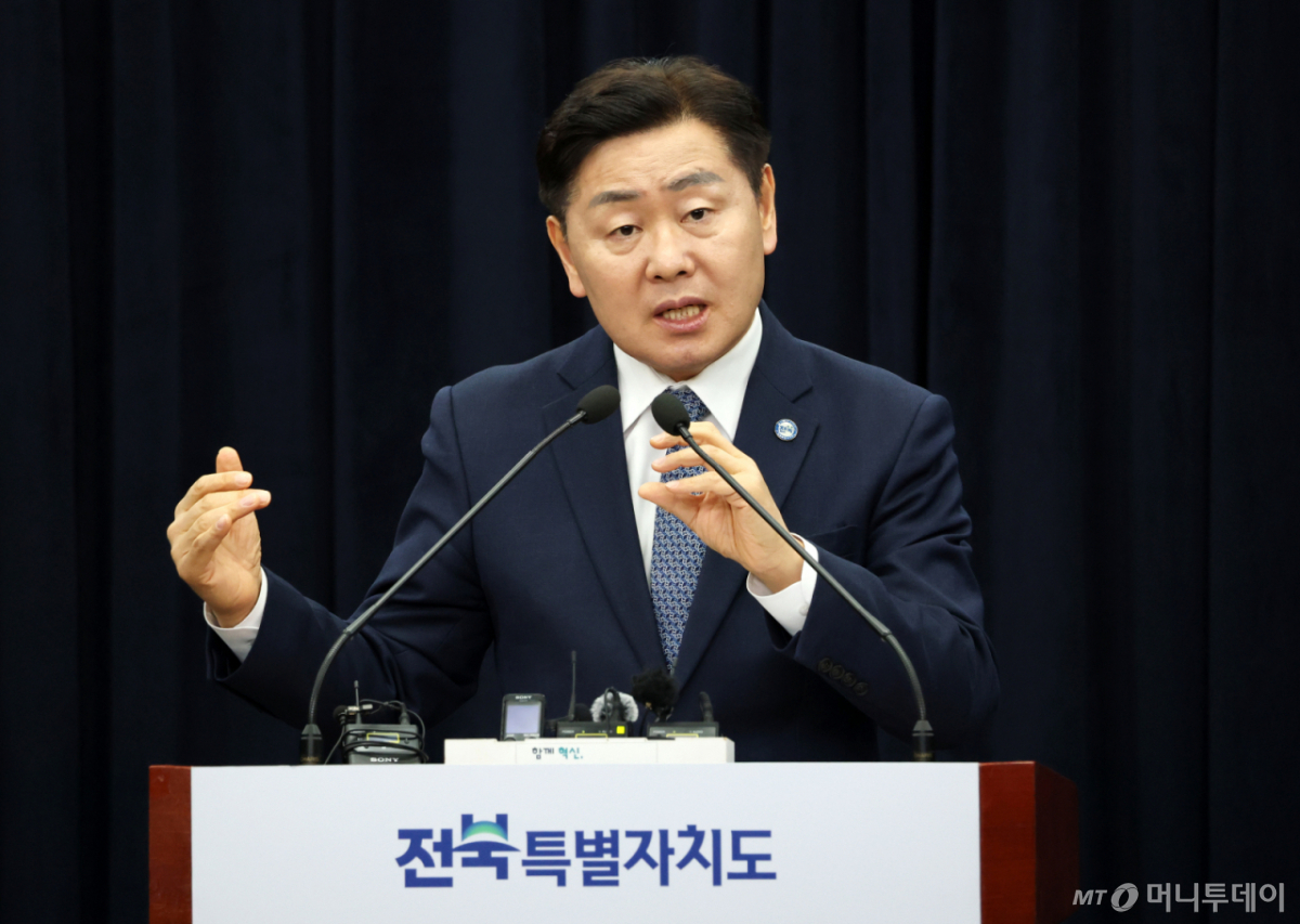 ![[전주=뉴시스] 김얼 기자 = 김관영 전북특별자치도지사가 25일 전북 전주시 전북특별자치도청 기자회견장에서 조선산업과 관련한 기자회견을 열고 질의에 답변하고 있다. 2026.03.25. pmkeul@newsis.com /사진=김얼](https://thumb.mt.co.kr/cdn-cgi/image/f=avif/21/2026/04/2026040110160587687_1.jpg)