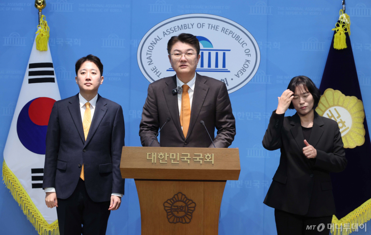 ![[서울=뉴시스] 조성봉 기자 = 김정철 개혁신당 서울시장 예비후보가 19일 오전 서울 여의도 국회 소통관에서 서울시장 출마선언을 하고 있다. 왼쪽은 이준석 개혁신당 대표. 2026.03.19. suncho21@newsis.com /사진=조성봉](https://thumb.mt.co.kr/cdn-cgi/image/f=avif/21/2026/04/2026040115294868764_1.jpg)