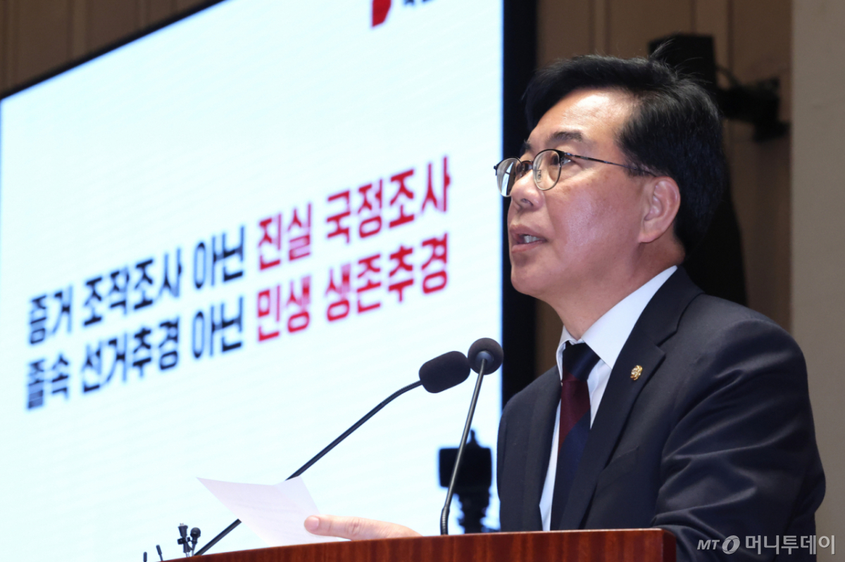 한편 송 원내대표는 이날 이재명 대통령의 추경(추가경정예산) 편성 시정연설을 앞두고 "전쟁 핑계 추경, 선거용 매표 추경"이라고 비판했다.