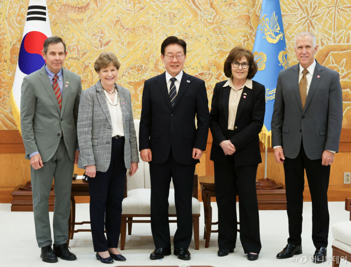이재명 대통령이 방한한 미 상원의원단을 만나 "전시작전권 환수를 통해 미국의 부담을 줄이고 우리가 최소한 한반도 인근에서는 우리가 자체적으로 동북아 지역의 안전과 평화를 지켜내겠다는 생각을 갖고 있다"고 밝혔다.