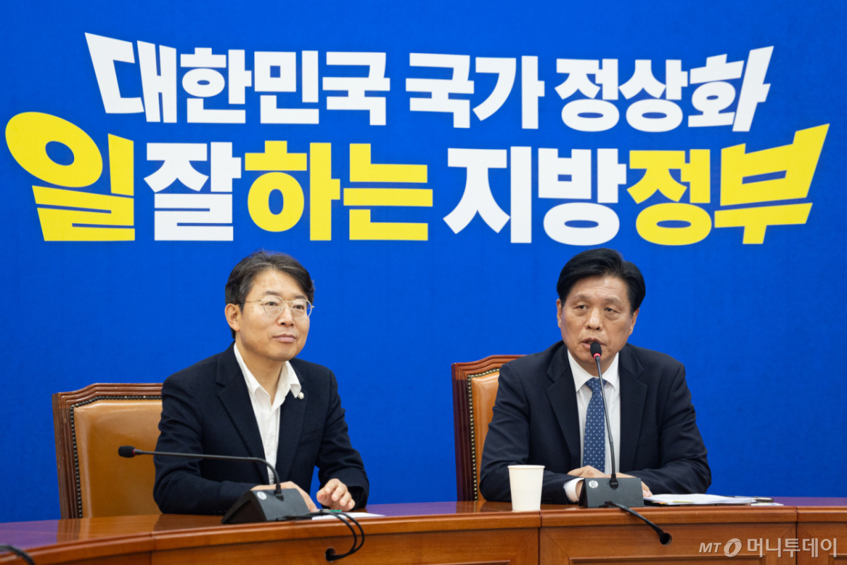 조승래 민주당 사무총장은 5일 오후 서울 여의도 국회에서 "이번 선거에서 국민의 선택을 받아 내란 세력 척결 및 완전 종식으로 진정한 의미의 국가 정상화를 실현하고 중앙 정부와 함께 대한민국 대도약의 초석을 마련할 수 있도록 진인사대천명 마음으로 최선 다하겠다"며 슬로건의 의미를 설명했다.