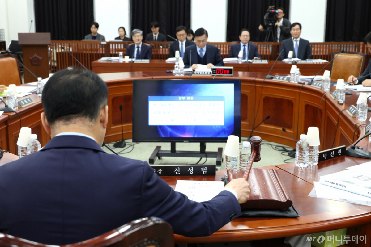 ![[서울=뉴시스] 국회사진기자단 = 신성범 정보위원장이 6일 서울 여의도 국회에서 열린 정보위원회 전체회의에서 의사봉을 두드리고 있다. 2026.04.06.](https://thumb.mt.co.kr/cdn-cgi/image/f=avif/21/2026/04/2026040614554276125_1.jpg)