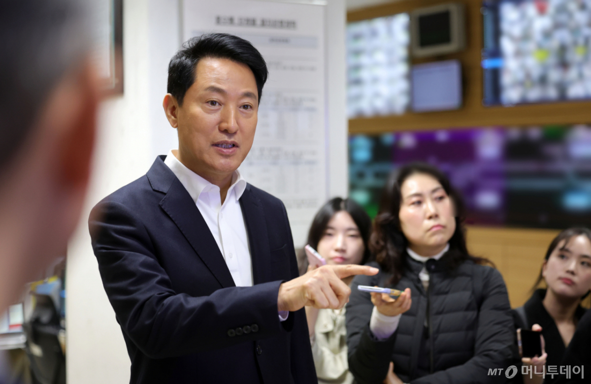 ![[서울=뉴시스] 홍효식 기자 = 오세훈 서울시장이 6일 서울 성동구 서울교통공사 제2관제센터를 방문해 관제센터 운영현황 및 무선통신기반 열차제어시스템(CBTC) 도입시 혼잡도 개선효과를 보고받으며 발언하고 있다. 2026.04.06. yesphoto@newsis.com /사진=홍효식](https://thumb.mt.co.kr/cdn-cgi/image/f=avif/21/2026/04/2026040708593199469_1.jpg)