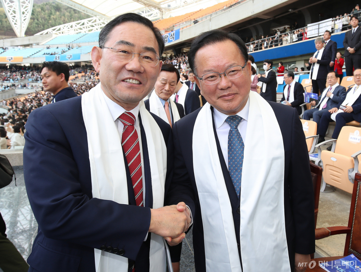 [the300] (대구=뉴스1) 공정식 기자 = 6·3 지방선거에서 더불어민주당 후보로 대구시장에 출마하는 김부겸 전 총리와 국민의힘에서 공천 배제(컷오프)된 주호영 국회부의장이 5일 오후 대구 수성구 대구스타디움에서 열린 '2026 대구 기독교 부활절 연합예배'에서 만나 악수하고 있다. 2026.4.5/뉴스1 Copyright © 뉴스1. All rights reserved. 무단 전재 및 재배포, AI학습 이용 금지. /사진=(대구=뉴스1) 공정식 기자 8일 주호영 국회 부의장. 독자들의 PICK! "모텔 여사장과 잤다" 아내가 불륜 중독...돈 받는 연하남=친아들 동생에 '극약' 먹이고 학대한 언니…수십 년 뒤 연락해 "신장이식 좀" "돈 안 줘서, 복수한다 생각"...정선희, 故안재환 실종 신고 안 한 이유 "싹 다 벗고 몸무게 잰다"48세 김사랑, 무보정 몸매 비결