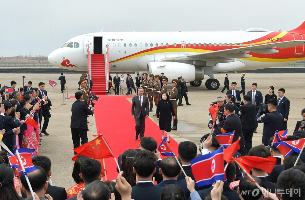 ![(평양 노동신문=뉴스1) = 북한 노동당 기관지 노동신문은 10일 왕이 중국 공산당 중앙위원회 정치국 위원 겸 외교부장이 전날 평양에 도착했다고 보도했다. 최선희 외무상과 간부들이 왕 외교부장 일행을 맞이했다. 평양국제공항에 북중 두 나라의 국기가 게양되고 항공역 앞 정류장에는 인민군 명예위병대가 서 있었다고 전했다. [국내에서만 사용가능. 재배포 금지. DB 금지. For Use Only in the Republic of Korea. Redistribution Prohibited] rodongphoto@news1.kr Copyright © 뉴스1. All rights reserved. 무단 전재 및 재배포, AI학습 이용 금지.](https://thumb.mt.co.kr/cdn-cgi/image/f=avif/21/2026/04/2026041007381666042_1.jpg)