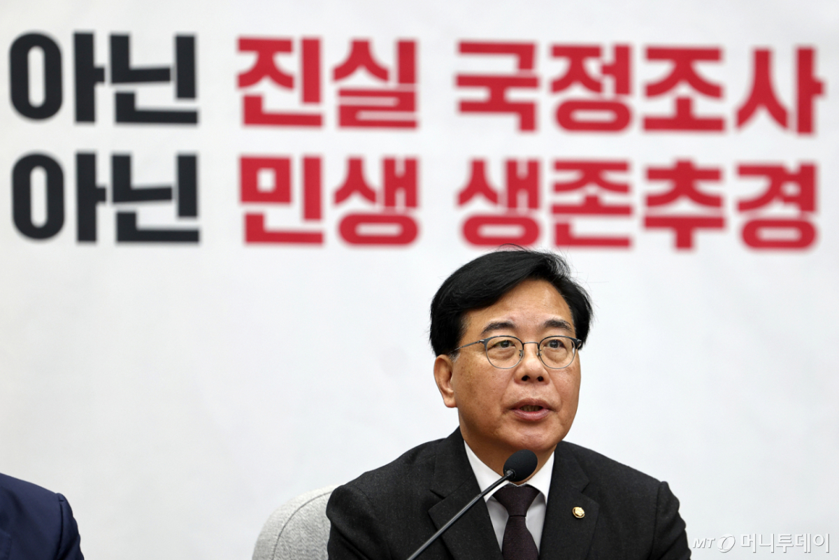 송언석 국민의힘 원내대표는 이날 오전 서울 여의도 국회 원내대책회의에서 "정부는 이란 전쟁이 최소 6개월 이상 지속된다는 가정으로 추경안을 제출했다"며 "2주간 휴전 소식으로 추경의 기본 전제가 변했다"고 밝혔다.