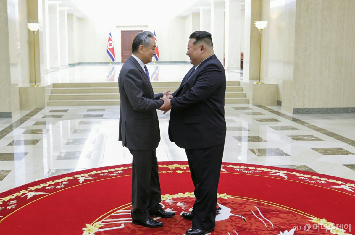 ![(평양 노동신문=뉴스1) = 북한 노동당 기관지 노동신문은 11일 김정은 노동당 총비서가 10일 평양에서 왕이 중국 외교부장을 접견하고 담화를 나눴다고 보도했다. [국내에서만 사용가능. 재배포 금지. DB 금지. For Use Only in the Republic of Korea. Redistribution Prohibited] rodongphoto@news1.kr Copyright © 뉴스1. All rights reserved. 무단 전재 및 재배포, AI학습 이용 금지.](https://thumb.mt.co.kr/cdn-cgi/image/f=avif/21/2026/04/2026041109050888594_1.jpg)