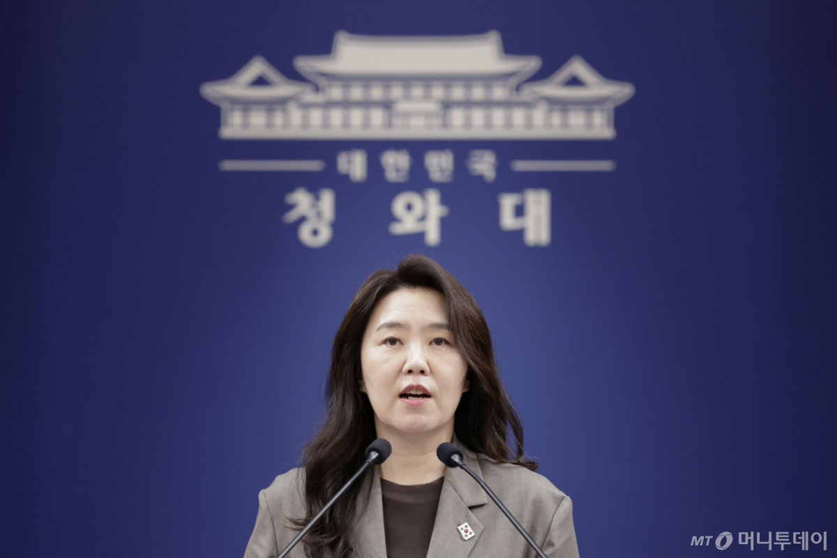 ![[서울=뉴시스] 최동준 기자 = 강유정 수석대변인이 13일 청와대에서 한-폴란드 정상회담 등 현안 관련 브리핑을 하고 있다. 2026.04.13. photocdj@newsis.com /사진=최동준](https://thumb.mt.co.kr/cdn-cgi/image/f=avif/21/2026/04/2026041317163072524_1.jpg)