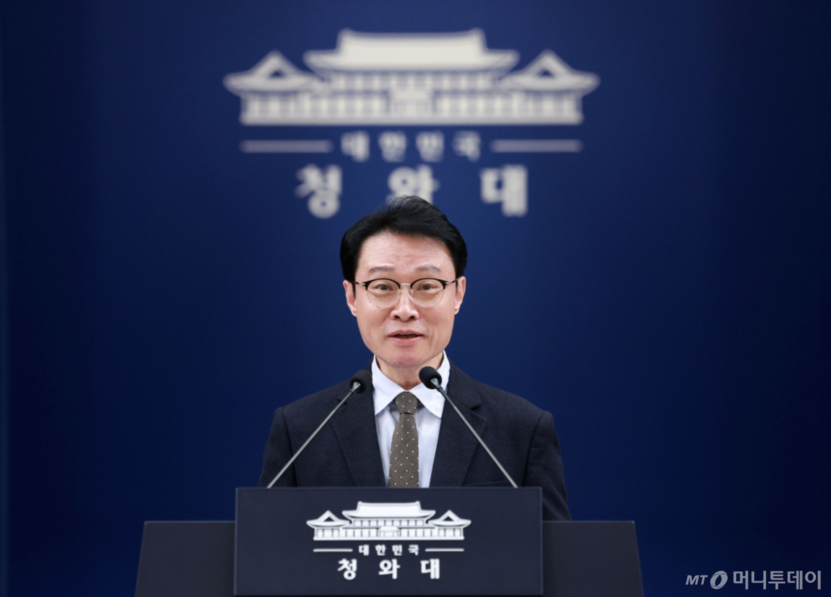 [서울=뉴시스] 고범준 기자 = 이규연 홍보소통수석이 22일 청와대 춘추관에서 정부 인사 관련 브리핑을 하고 있다.   이재명 대통령은 이날 신현송 현 국제결제은행(BIS) 통화경제국장을 신임 한국은행 총재 후보자로 지명했다. 2026.03.22. bjko@newsis.com /사진=고범준