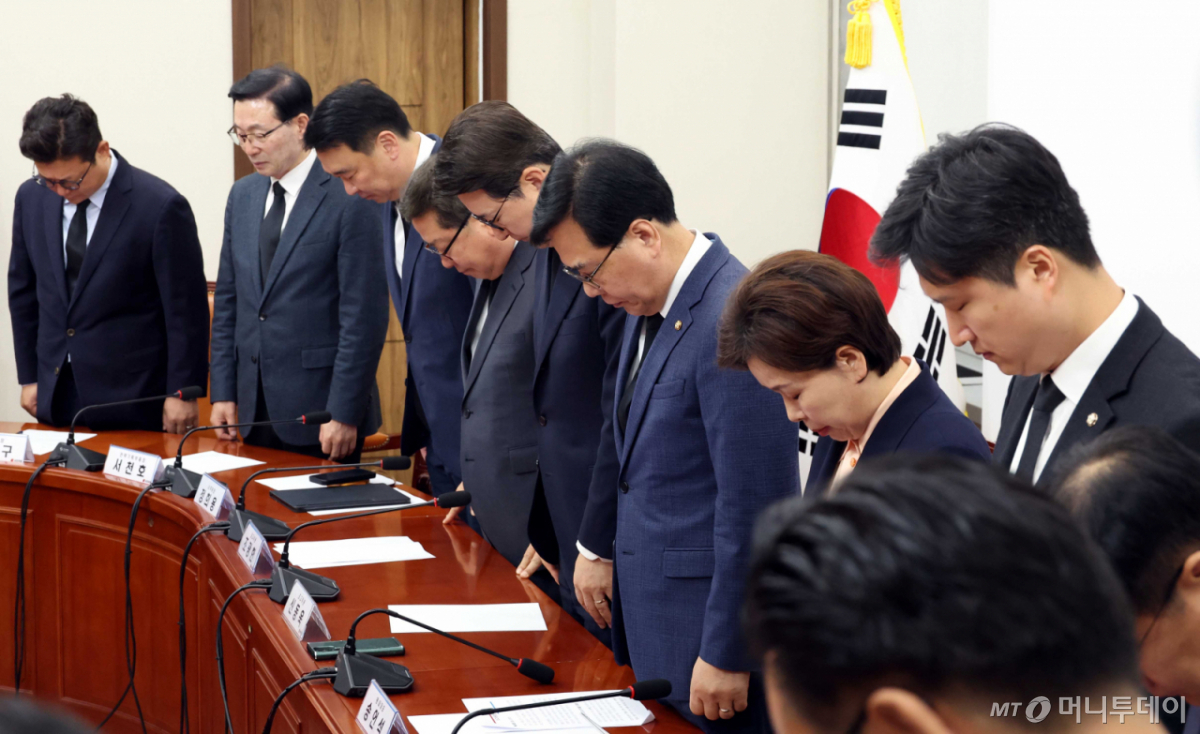 ![[서울=뉴시스] 조성봉 기자 = 송언석 국민의힘 원내대표와 최고위원들이 16일 오전 서울 여의도 국회에서 열린 최고위원회의에서 세월호 참사 희생자들의 12주기를 추모하며 묵념을 하고 있다. 2025.04.16. suncho21@newsis.com /사진=조성봉](https://thumb.mt.co.kr/cdn-cgi/image/f=avif/21/2026/04/2026041611313627358_1.jpg)