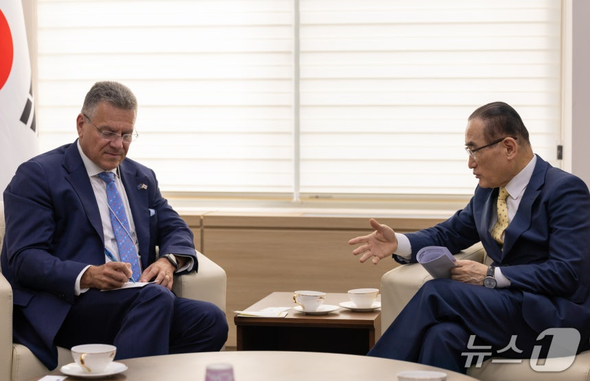 위성락 청와대 국가안보실장이 17일 방한 중인 마로시 셰프초비치 유럽연합(EU) 집행위원회 통상·경제안보 집행위원을 만나 한-EU 간 경제안보 협력 강화를 논의했다.