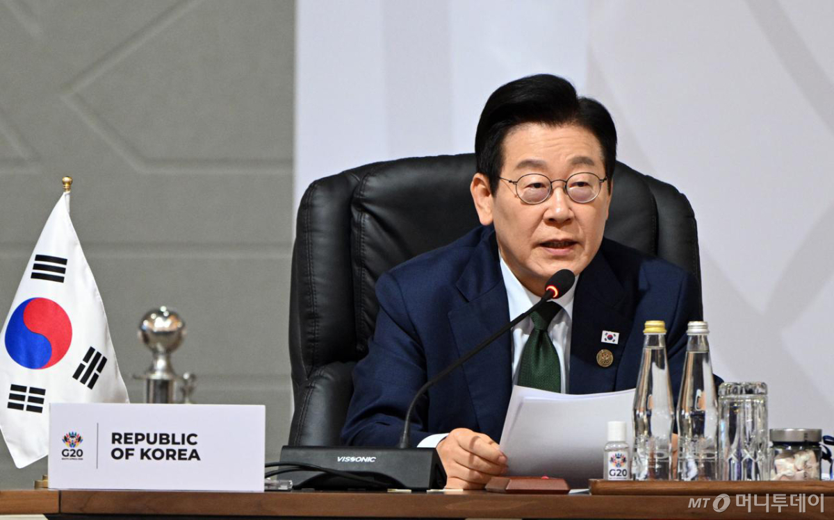 [the300] [요하네스버그=뉴시스] 최동준 기자 = 이재명 대통령이 23일(현지 시간) 남아프리카공화국 요하네스버그 엑스포 센터에서 열린 G20 정상회의 제3세션에서 발언하고 있다. (사진=G20 조직위원회 제공) 2025.11.23. [email protected] *재판매 및 DB 금지 /사진= 17일 전은수 청와대 대변인 서면브리핑. 독자들의 PICK! '성매매 논란' 지나, 결혼·출산?…웨딩드레스 이어 유모차까지 100만원도 못 벌던 개그맨..."수입 1000배" 변호사 된 깜짝 근황 "제수씨와 잠자리를?" 초강수 질문…'친자확인' 남편, 끝내 결백 입증 "조진웅, 은퇴할 줄 몰랐다…식사 제안도 거절" 정지영 감독이 전한 근황