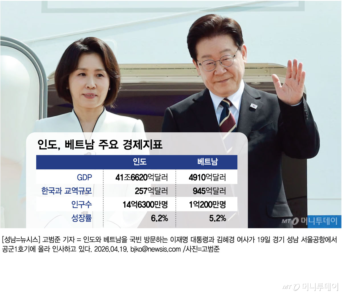 이재명 대통령이 인도와 베트남을 연이어 순방하는 것은 글로벌 사우스 외교를 본격화하는 움직임으로 풀이됐다. 인도와 베트남은 경협을 이야기할 때 지정학적 위치나 경제 규모·교역 규모에 있어서 빼놓고 이야기할 수 없다. 특히 G2(미국·중국) 갈등 속 중국 의존도를 줄이려는 각국의 '차이나+1 전략' 핵심 국가들이다. 이 대통령이 대기업 뿐만 아니라 중견·중소기업 등 대규모 경제사절단과 동행한 이유다.