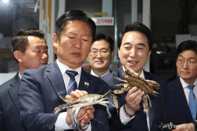 시민들은 "어머, 어떻게 하면 좋으냐" "이번에는 꼭 잘되길 바란다" "민주당 화이팅" 등을 외쳤다. 두 사람은 건어물 상점 외에도 카페, 수산물 골목 등을 찾아 상인들과 1시간가량 이야기를 나눴다. 직접 현금을 꺼내 김과 건어물 등을 구매하고 시민들과 기념사진도 촬영했다. 정 대표는 자신의 고향이 충남 금산이라는 점을 강조하며 "같은 충청도 사람"이라고 말했다.