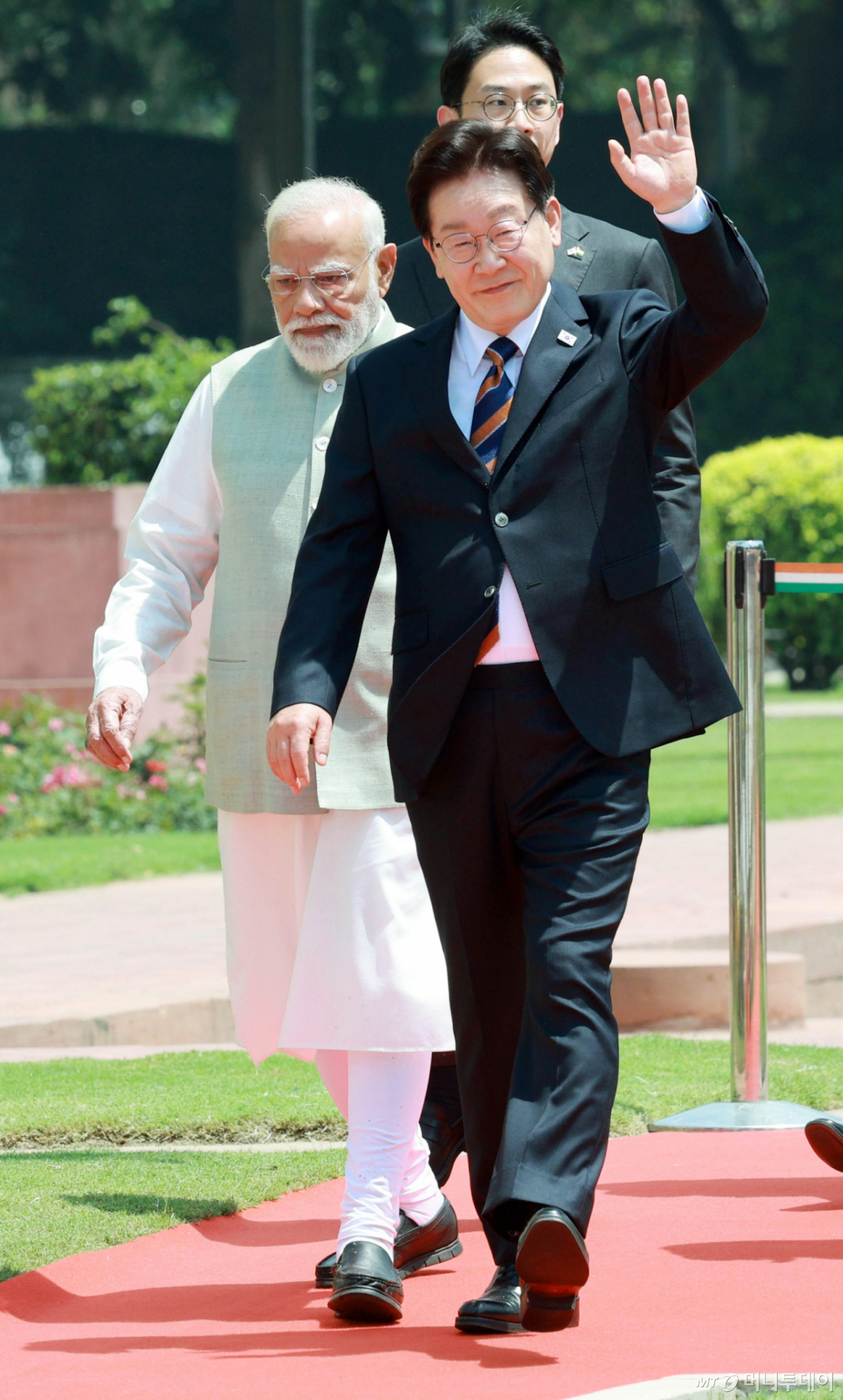 한편 우리나라 대통령이 인도를 국빈 방문한 것은 2018년 문재인 전 대통령 이후 8년 만이다. 또 이 대통령이 모디 총리와 회동한 것은 지난해 6월 캐나다에서 열린 G7(주요 7개국) 정상회의, 11월 남아프리카공화국에서 열린 G20 정상회의에 이은 세 번째다. 이날 회담에 앞서 이 대통령은 대통령궁 '라슈트라파티 바반'에서 열린 공식환영식에 참석했고 이어 간디 추모공원 헌화, 인도 총리관저에서 아소카나무 공동 식수 등 일정을 소화했다.