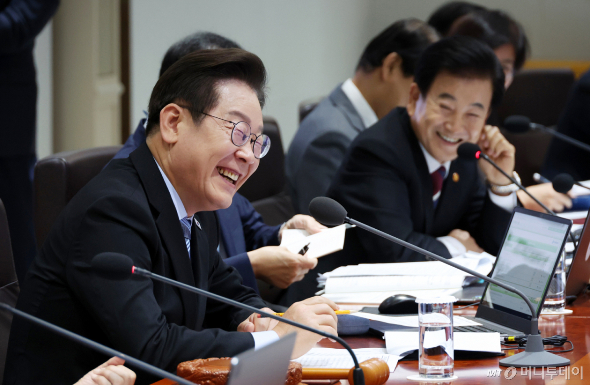 ![[서울=뉴시스] 고범준 기자 = 이재명 대통령이 2일 서울 용산 대통령실 청사에서 열린 제40회 국무회의에서 정동영 통일부 장관의 발언을 듣고 웃고 있다. (대통령실통신사진기자단) 2025.09.02](https://thumb.mt.co.kr/cdn-cgi/image/f=avif/21/2026/04/2026042021055089673_1.jpg)