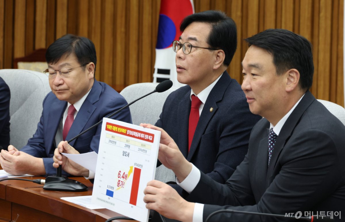 송언석 국민의힘 원내대표가 장기보유특별공제(장특공) 폐지는 국민 재산을 강탈하는 것과 다름이 없다고 주장했다.