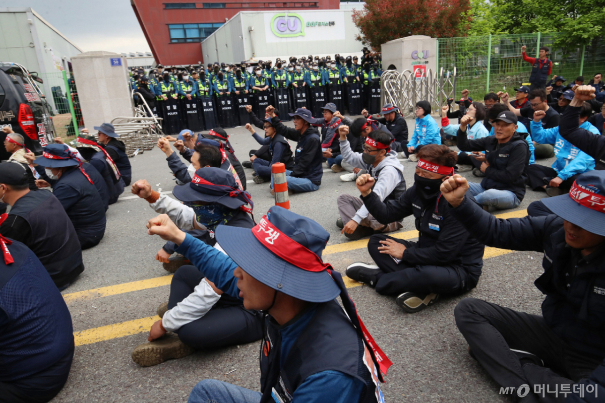 앞서 전날 경남 진주시 CU진주물류센터 앞에서 민주노총 화물연대 소속 조합원 3명이 BGF리테일에 교섭을 촉구하던 중 2.5톤 탑차에 깔려 50대 남성 1명이 숨지고 2명이 다쳤다. 사고는 상품 배송 목적이었던 물류 차량 출차를 일부 노조원들이 막아서는 과정에서 발생했다. 화물연대는 지난 7일부터 본사에 배송 기사 처우 개선과 원청교섭을 요구하며 무기한 총파업을 벌이고 있다.