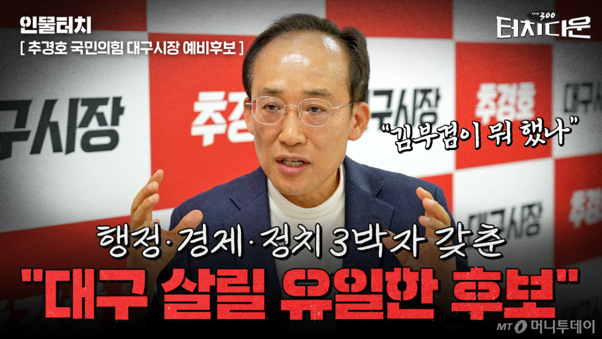 추 후보는 21일 공개된 머니투데이 공식 유튜브 채널M의 '터치다운the300'에 출연해 "저는 행정·경제·정치력 삼박자를 갖춘 대한민국 유일한 후보"라며 이같이 말했다.