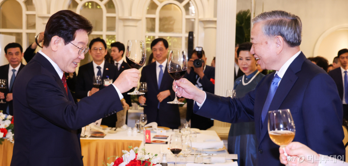 이 수석은 "양 정상은 에너지 안보 및 공급망 안정을 위한 협력을 확대해 나가기로 했다. 이 대통령은 베트남의 신규 원전 건설 및 전력 인프라 사업 참여를 통해 양국이 에너지 전환 등 전략적 협력의 새로운 지평을 열어나가기를 희망한다고 했다"며 "럼 서기장은 이에 공감하고 양국이 에너지 안보 파트너십을 더욱 강화해 서로의 지속가능한 발전에 기여하기를 바란다고 했다"고 전했다.
