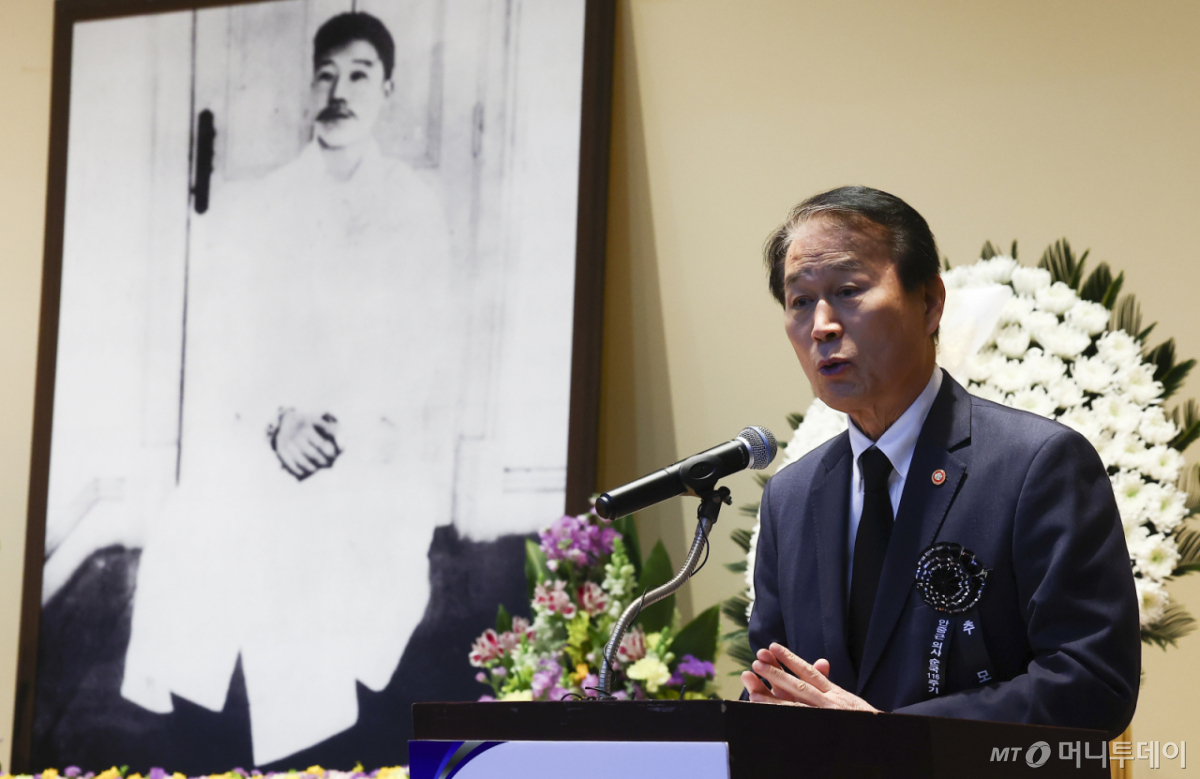 ![[서울=뉴시스] 김근수 기자 = 권오을 국가보훈부 장관이 26일 서울 중구 안중근의사기념관 강당에서 열린 안중근의사 순국 116주기 추모식에서 추모사를 하고 있다. 2026.03.26. ks@newsis.com /사진=김근수](https://thumb.mt.co.kr/cdn-cgi/image/f=avif/21/2026/04/2026042410092790441_1.jpg)