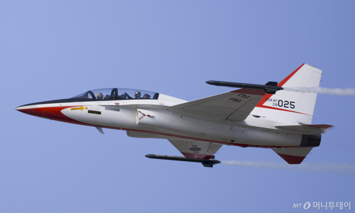 ![[성남=뉴시스] 김근수 기자 = 서울ADEX 2025 개막 첫 날인 17일 오전 경기 성남시 서울공항에서 공군 T-50이 상공에서 단기 기동을 하고 있다. 2025.10.17.](https://thumb.mt.co.kr/cdn-cgi/image/f=avif/21/2026/04/2026042416333099440_1.jpg)