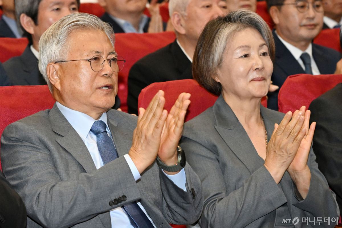![[서울=뉴시스] 김금보 기자 = 문재인 전 대통령과 김정숙 여사가 27일 오후 서울 여의도 국회 의원회관에서 열린 4.27 판문점 선언 8주년 기념식에서 박수치고 있다. (공동취재) 2026.04.27. photo@newsis.com /사진=](https://thumb.mt.co.kr/cdn-cgi/image/f=avif/21/2026/04/2026042913351611100_1.jpg)