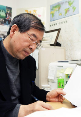 사무실은 마치 대문호 톨스토이의 모스크바 집필실처럼 소박했다. 난방비를 줄여줄 전기스토브가 걸상 뒤에 있고 벽엔 에어컨 대신 부채질로 여름을 나는 사진이 붙어 있다. 창문을 뺀 3면에 덕지덕지 붙어있는 포스트잇과 메모지 가운데 B4 크기의 큼직한 게시문 같은 게 가장 눈에 잘 띄는 곳에 걸려 있다.