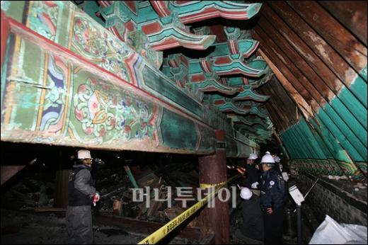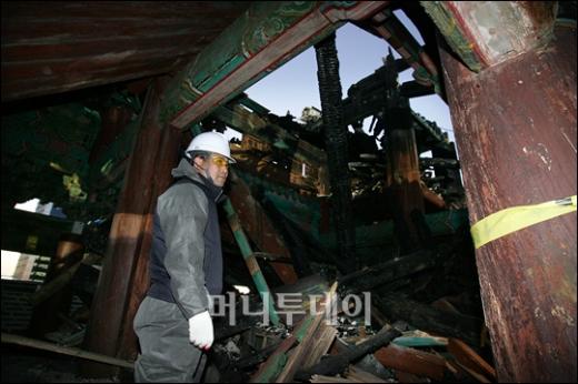 방화로 국보1호 숭례문이 전소된 가운데 13일 오후 감식반원들이 처참하게 변해버린 숭례문 내부에서 감식작업을 하고 있다. 독자들의 PICK! "친손녀 팔이 그만" 홍서범에 분노한 전 며느리…"'외도 아들' 감싸기" 월 700만원 벌어도..."생활비 30만원, 한국인 남편 짠돌이" 8살 차이 장모·사위, 금단의 관계로...회복 불가 외도 사례 "며느리 불륜" 공방에...신혼집에 몰카 설치한 류중일 전 사돈