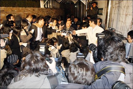 이씨의 시신이 안치된 순천향병원에서 마포경찰서 이문수 형사과장이 취재진에게 사건 브리핑을 하고 있다.