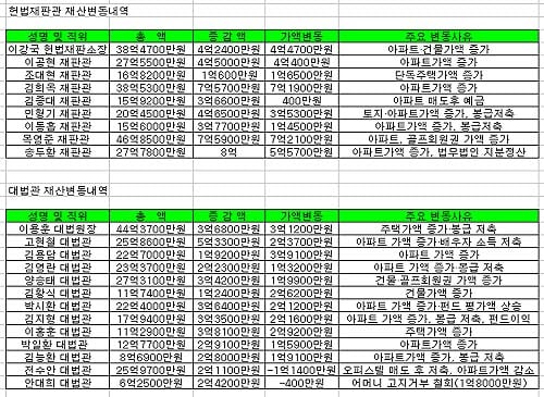 [표]법조계 재산내역 및 변동현황