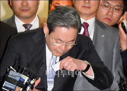 삼성그룹 이건희 회장이 피의자 신분으로 재소환조사를 마친뒤 11일 오후 서울 한남동 삼성특검 사무실을 나서고 있다. 지친 모습으로 떠나는 이 회장의 손에 입장을 밝히는 메모가 보인다. 독자들의 PICK! 5년 전 사라진 걸그룹 리더 충격 폭로…"빚쟁이라며 인터넷방송 시켜" '40억 건물주' 이해인 "대출만 32억…이자 계산하다 못 자" 토로 친구 아내와 바람난 남편...월 300만원 받고 방 잡아준 친구 배우 정은우, 돌연 사망 비보…하루 전엔 SNS에 장국영 사진