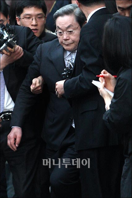 삼성그룹 이건희 회장이 피의자 신분으로 재소환조사를 마친뒤 11일 오후 서울 한남동 삼성특검 사무실을 나서고 있다. 독자들의 PICK! "자습 때 둘이 사라져"...홍서범 아들 불륜, 학생들 잇단 제보 월 700만원 벌어도..."생활비 30만원, 한국인 남편 짠돌이" 8살 차이 장모·사위, 금단의 관계로...회복 불가 외도 사례 "며느리 불륜" 공방에...신혼집에 몰카 설치한 류중일 전 사돈