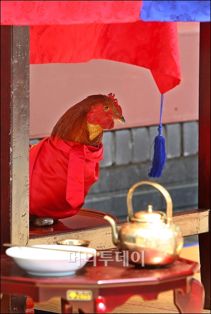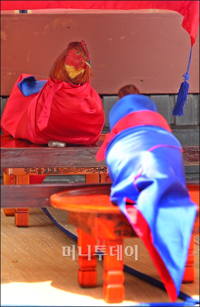 조류인플루엔자(AI)가 전국으로 확산된 가운데 15일 오후 서울 인사동 남인사마당서 열린 전통혼례예식에서 살아있는 생닭이 아닌 박제 닭이 사용되고 있어 눈길을 끌고 있다. 독자들의 PICK! 5년 전 사라진 걸그룹 리더 충격 폭로…"빚쟁이라며 인터넷방송 시켜" 친구 아내와 바람난 남편...월 300만원 받고 방 잡아준 친구 배우 정은우, 돌연 사망 비보…하루 전엔 SNS에 장국영 사진 구준엽, 서희원 '400억 유산' 두고 장모와 갈등? 처제 입 열었다