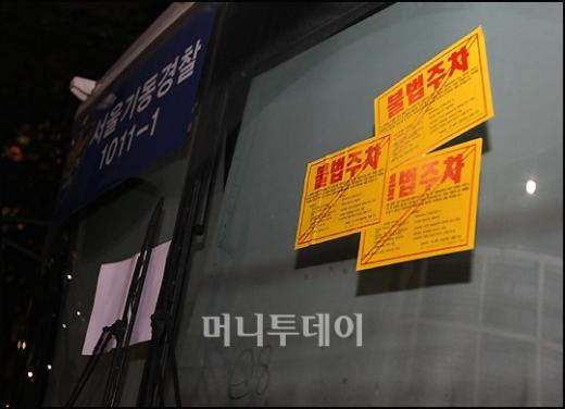 1일 저녁 서울 광화문에서 열린 미국 쇠고기 고시 철회 촉구 촛불문화제에서 시위대 진입을 막기위해 세워놓은 경찰버스에 시민들이 '불법주차' 스티커를 붙여 놓고 있다. 독자들의 PICK! "자습 때 둘이 사라져"...홍서범 아들 불륜, 학생들 잇단 제보 도끼♥이하이 열애설에 '절친' 슬리피 "결혼 가자" 월 700만원 벌어도..."생활비 30만원, 한국인 남편 짠돌이" 8살 차이 장모·사위, 금단의 관계로...회복 불가 외도 사례