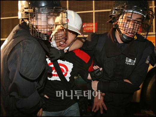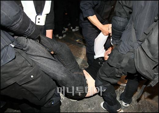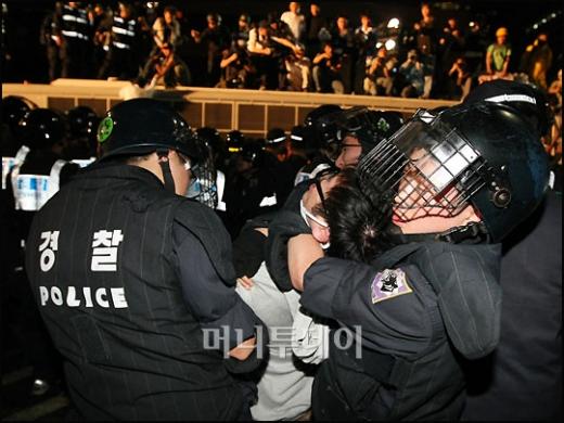 2일 새벽 서울 광화문에서 열린 미국 쇠고기 고시 철회 촉구 촛불문화제에서 전경들이 집회참가자들을 강제진압 후 연행하고 있다. 강제진압 과정에서 부상자들이 속출했다. 독자들의 PICK! "자습 때 둘이 사라져"...홍서범 아들 불륜, 학생들 잇단 제보 월 700만원 벌어도..."생활비 30만원, 한국인 남편 짠돌이" 8살 차이 장모·사위, 금단의 관계로...회복 불가 외도 사례 "며느리 불륜" 공방에...신혼집에 몰카 설치한 류중일 전 사돈