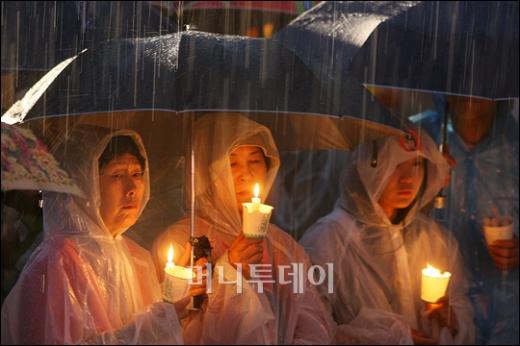 2일 오후 서울광장에서 열린 미국 쇠고기 수입반대 촛불문화제에 참석한 5000여명의 시민들이 궂은 날씨에도 불구하고 우산과 촛불을 들고 고시철회를 외치고 있다. 독자들의 PICK! "자습 때 둘이 사라져"...홍서범 아들 불륜, 학생들 잇단 제보 월 700만원 벌어도..."생활비 30만원, 한국인 남편 짠돌이" 8살 차이 장모·사위, 금단의 관계로...회복 불가 외도 사례 "며느리 불륜" 공방에...신혼집에 몰카 설치한 류중일 전 사돈