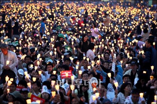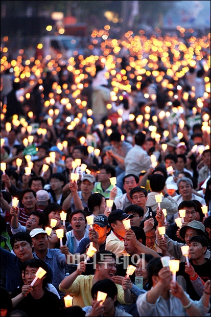 7일 오후 서울시청 앞 도로에서 열린 미국산쇠고기 수입반대 촛불문화제에 참석한 5만여명의 시민, 학생들이 구호를 외치며 행진을 시작하고 있다. 독자들의 PICK! 홍서범 전 며느리 "아들 외도, 대중에 사과? 저에게 하시라" 분노 월 700만원 벌어도..."생활비 30만원, 한국인 남편 짠돌이" 화사, 속옷이 다 보여...과감한 드레스 연출에 '깜짝' 이하이 "도끼, 하나뿐인 내 남자" 열애 인정…"두 사람 지금 미국에"