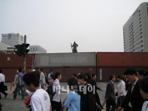 ↑ 세종로 일대 도로가 꽉 막힌 가운데 한 시민이 사진을 찍고 있다 10일 아침 서울 세종로 사거리 이순신 동상 앞에 경찰이 2단으로 쌓아올린 컨테이너박스가 길을 막고 있다. 이날 저녁 7시부터 열릴 '100만 촛불대행진'에 대비해 차단벽을 경찰 호송버스에서 컨테이너로 바꾼 것. 출근길 시민들은 교통 혼잡으로 불만을 터트렸다. 독자들의 PICK! "자습 때 둘이 사라져"...홍서범 아들 불륜, 학생들 잇단 제보 월 700만원 벌어도..."생활비 30만원, 한국인 남편 짠돌이" 8살 차이 장모·사위, 금단의 관계로...회복 불가 외도 사례 "며느리 불륜" 공방에...신혼집에 몰카 설치한 류중일 전 사돈