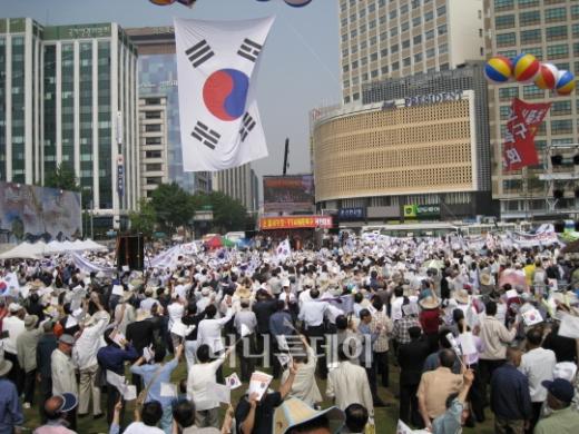 뉴라이트전국연합, 국민행동본부 등 보수단체들은 10일 오후 3시부터 서울시청 앞 광장에서 '법질서 수호-FTA비준촉구 국민대회'를 열었다.