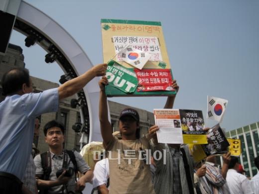 '촛불' 시위대와 큰 충돌은 없어… 미국산 쇠고기 소시지 시식 '눈길'