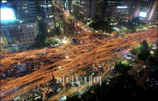 10일 저녁 서울 광화문네거리에서 미국산쇠고기 수입반대 촛불시위에 참석한 50만여 명의 시민들이 가두행진을 벌이고 있다. 독자들의 PICK! "자습 때 둘이 사라져"...홍서범 아들 불륜, 학생들 잇단 제보 월 700만원 벌어도..."생활비 30만원, 한국인 남편 짠돌이" 8살 차이 장모·사위, 금단의 관계로...회복 불가 외도 사례 "며느리 불륜" 공방에...신혼집에 몰카 설치한 류중일 전 사돈