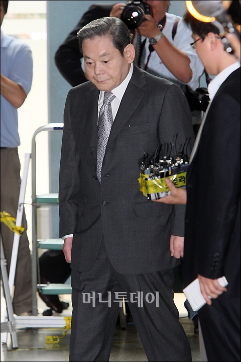 이건희 삼성그룹 회장이 삼성그룹의 12일 오후 서울 서초동 서울중앙지방법원에 피고인 자격으로 출두했다.