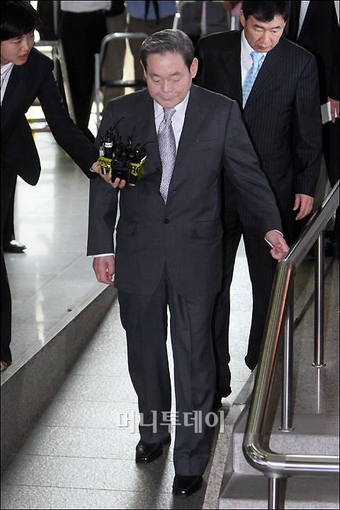 이건희 삼성그룹 회장이 삼성그룹의 12일 오후 서울 서초동 서울중앙지방법원에 피고인 자격으로 출두했다.