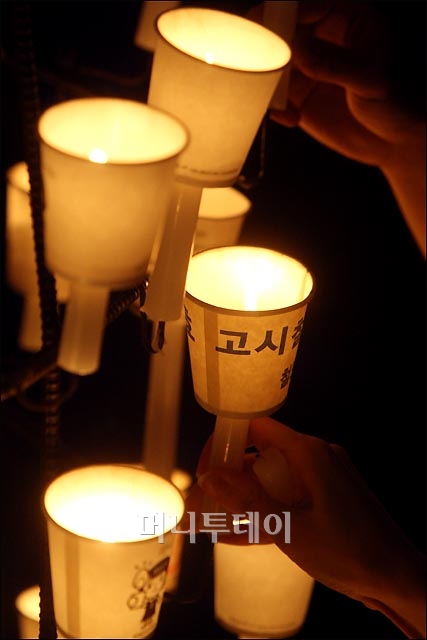 17일 저녁 서울시청 앞 광장에서 열린 미국산 쇠고기 수입반대 촛불집회에 참석한 시민들이 촛불 탑에 불을 붙이고 있다. 독자들의 PICK! "자습 때 둘이 사라져"...홍서범 아들 불륜, 학생들 잇단 제보 월 700만원 벌어도..."생활비 30만원, 한국인 남편 짠돌이" 8살 차이 장모·사위, 금단의 관계로...회복 불가 외도 사례 "며느리 불륜" 공방에...신혼집에 몰카 설치한 류중일 전 사돈