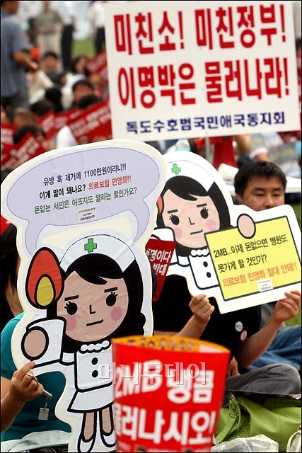 19일 저녁 서울시청 앞 광장에서 열린 미국산 쇠고기 수입, 의료민영화 반대 촛불집회에 참석한 시민들이 구호를 외치고 있다. 독자들의 PICK! 홍서범·조갑경, '아들 불륜' 사과…"양육비·위자료 빨리 주도록 할 것" 이휘재 "복귀 중압감에 가위 눌려…실수 잘 알아, 미흡하고 모자랐다" 홍지윤 "식당서 내 앞담화 하더라…충격에 무대공포증" 이하이 "도끼, 하나뿐인 내 남자" 열애 인정…"두 사람 지금 미국에"