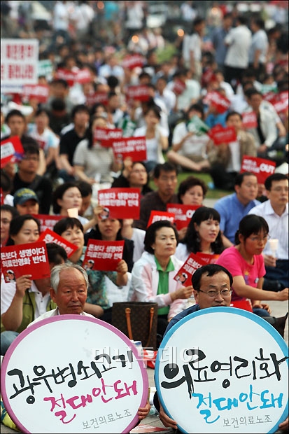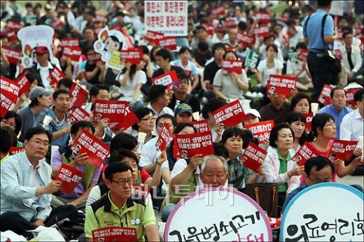 19일 저녁 서울시청 앞 광장에서 열린 미국산 쇠고기 수입 및 의료 민영화를 반대하는 촛불집회에 참석한 시민들이 피켓을 들고 구호를 외치고 있다. 독자들의 PICK! 홍서범 전 며느리 "아들 외도, 대중에 사과? 저에게 하시라" 분노 월 700만원 벌어도..."생활비 30만원, 한국인 남편 짠돌이" 화사, 속옷이 다 보여...과감한 드레스 연출에 '깜짝' 이하이 "도끼, 하나뿐인 내 남자" 열애 인정…"두 사람 지금 미국에"